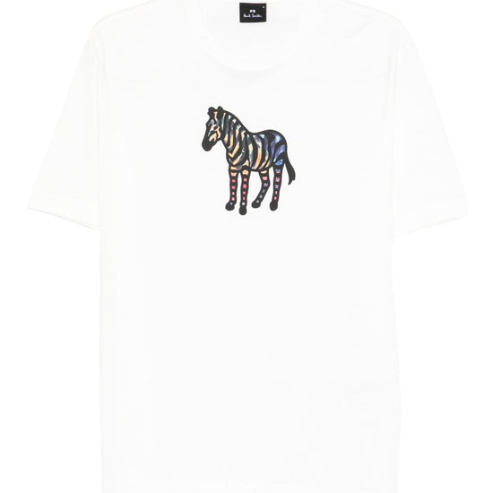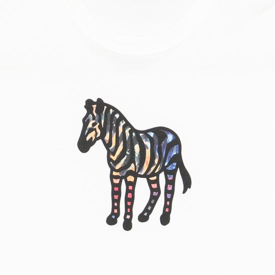 White cotton zebra print crew neck short sleeves zebra organic cotton t-shirt