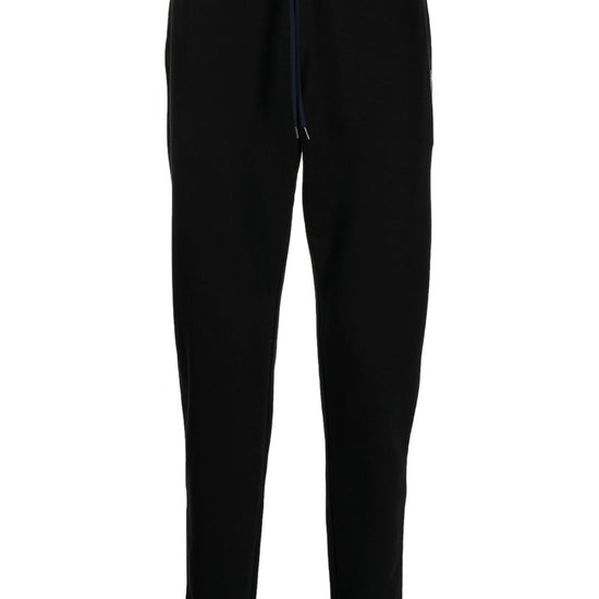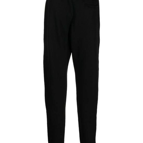Black organic cotton jersey knit ribbed trim silver-tone hardware signature zebra motif elasticated drawstring waistband slim cut elasticated ankles two side slit pockets rear welt pocket. zebra logo cotton joggers