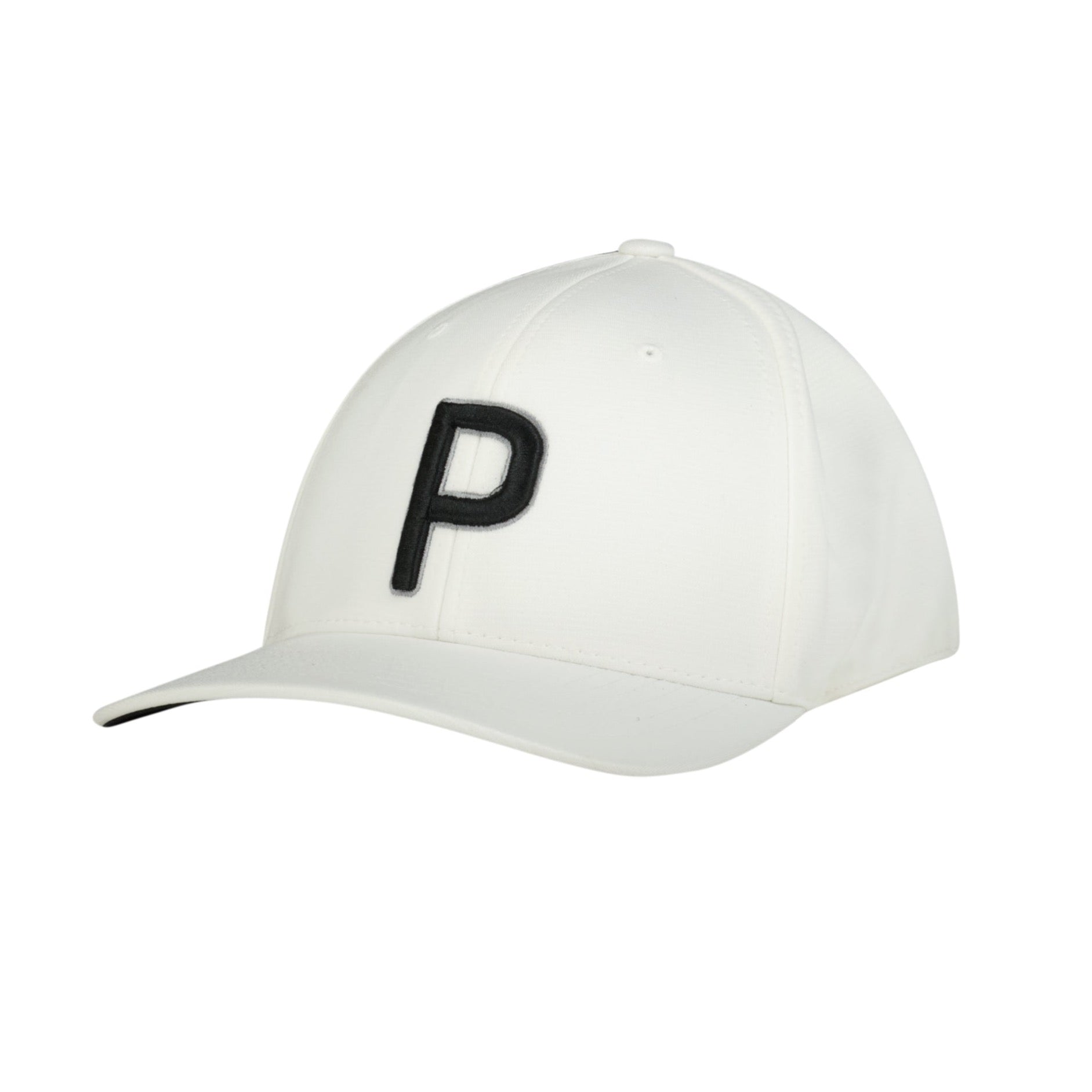 elevate your golf attire with the puma embroidered p logo cap. designed for both style and functionality, this snapback cap features a slight curve and a moisture-wicking performance sweatband to keep you cool and comfortable on the course. the 3d embroidered puma logo and reflective puma label add a touch of flair to your look.