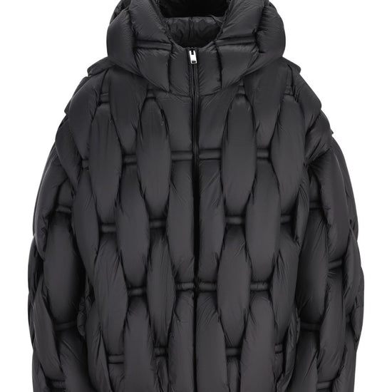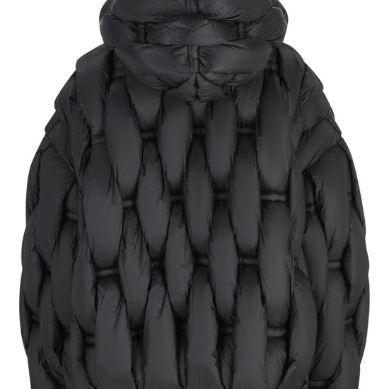 Black quilted hood zip fastening puffer down jacket