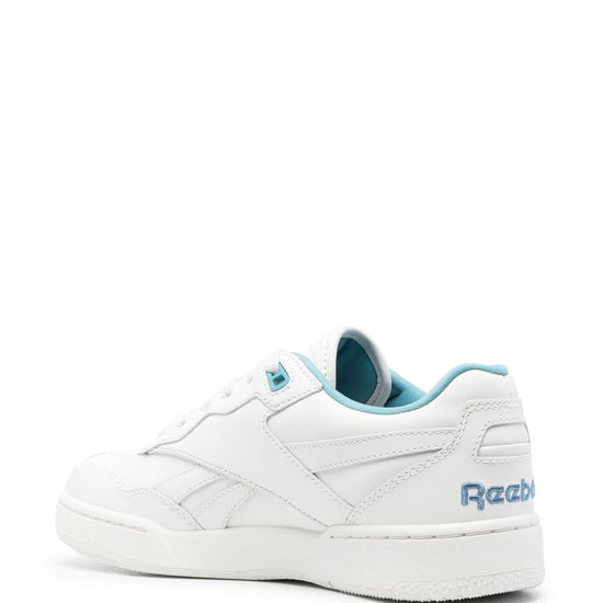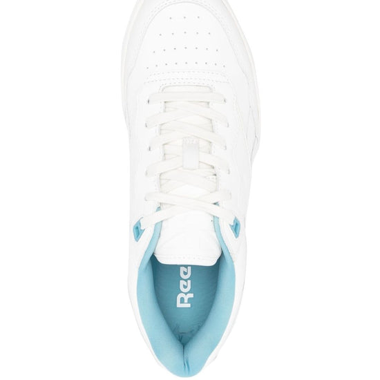 Bb 4000 ii logo-debossed sneakers from reebok featuring optical white, aqua blue, calf leather, panelled design, debossed logo to the side, embroidered logo to the rear, round toe, front lace-up fastening, branded insole and flat rubber sole. club c bb4000 leather sneakers size and fit - heel 1,2 in / 3 cm; platform 0,8 in / 2 cm