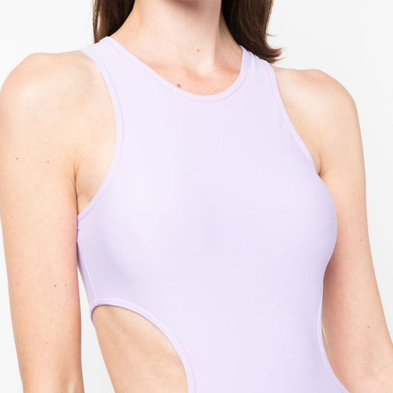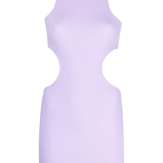 Cut-out sleeveless minidress from reina olga featuring lilac purple, stretch-design, cut-out detailing, round neck, thin shoulder straps, sleeveless, racerback and thigh-length. cut-out cut-out detail short dress size and fit - this piece fits true to size. we recommend you get your regular size. model is 1,75m / 5ft 8in wearing size 1 (num)
