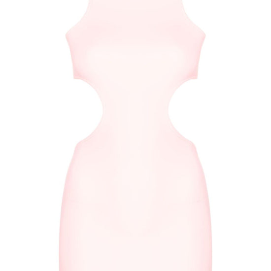 Cut-out sleeveless minidress from reina olga featuring blush pink, stretch-design, cut-out detailing, round neck, thin shoulder straps, sleeveless, racerback and thigh-length. cut-out detail short dress size and fit - this piece fits true to size. we recommend you get your regular size. model is 1,75m / 5ft 8in wearing size 1 (num)