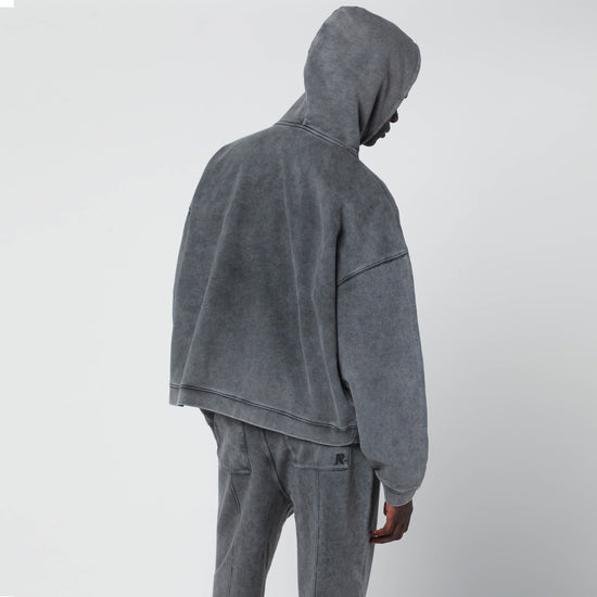 Represent sweatshirt in vintage effect gray cotton, featuring a hood, front kangaroo pocket with logo tag, long sleeves with dropped shoulders, and an oversized fit. size and fit - model wears size l model measurements: height: 185 cm chest: 86 cm waist: 72 cm hips: 93 cm
