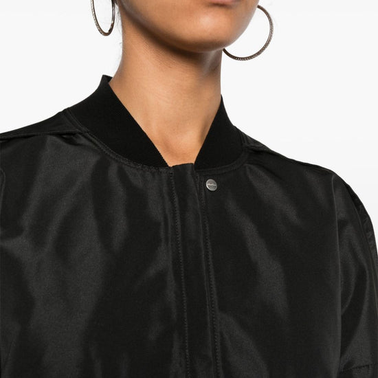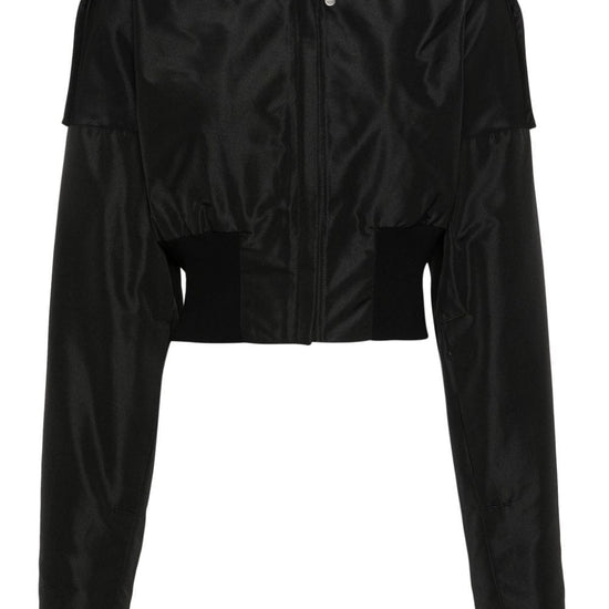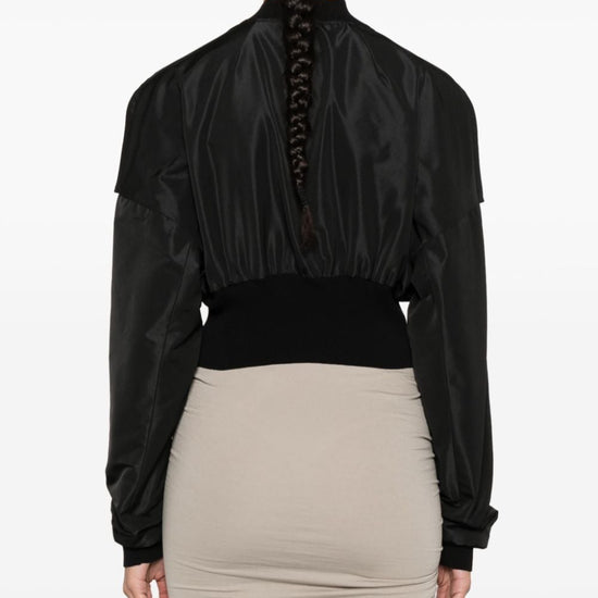 Black padded design ribbed band collar drop shoulder long sleeves sleeve zip pocket ribbed cuffs and hem cropped full lining concealed front zip fastening cropped bomber jacket size and fit - this piece fits true to size. we recommend you get your regular size. model is 1,75m / 5ft 8in wearing size 40 (it)
