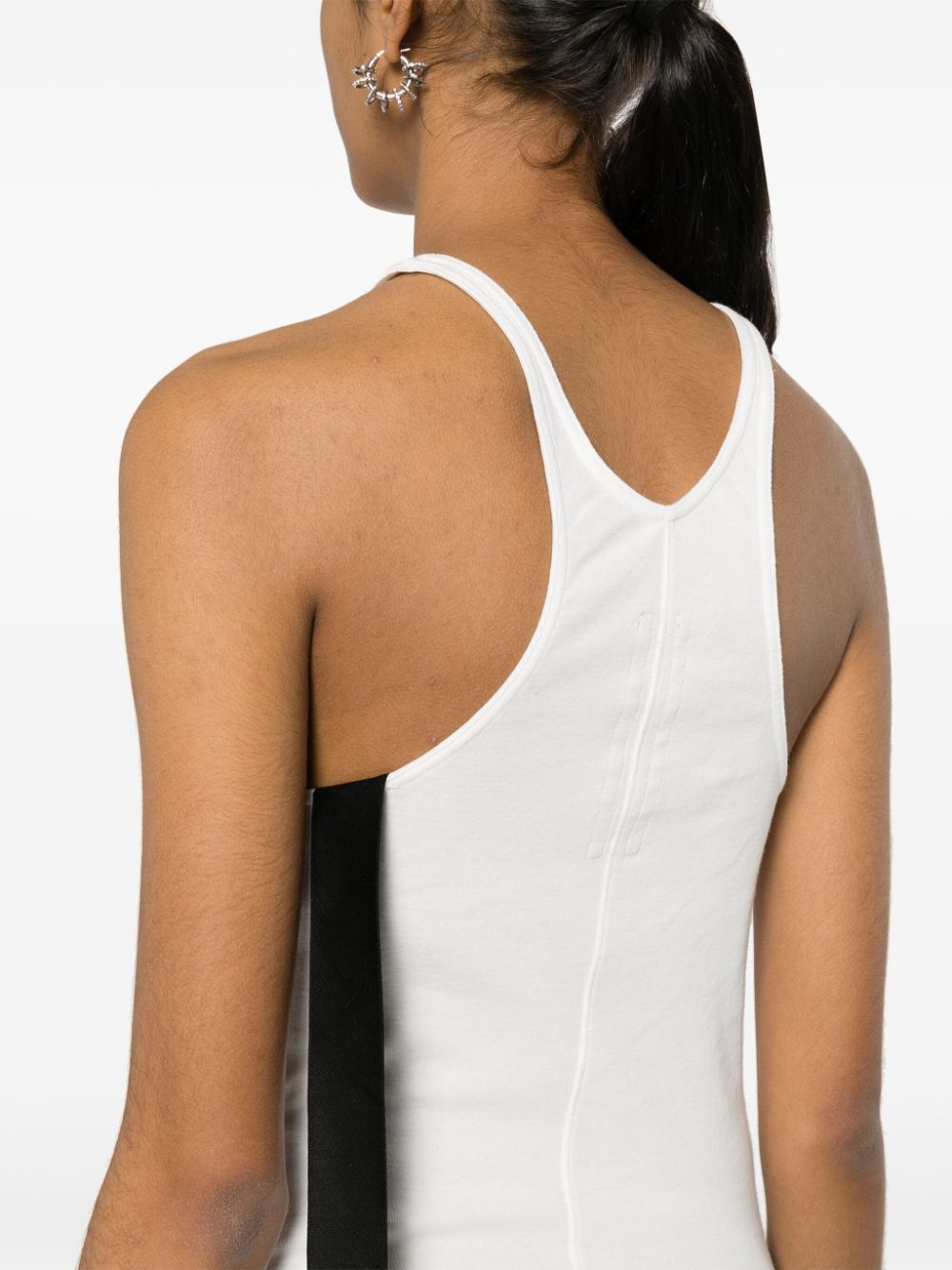 White organic cotton soft jersey round neck thin straps sleeveless thigh-length straight raw-cut hem logo-tape detailing racerback pull-on style this item is made from at least 50% organic materials. learn more about what makes a product conscious on our conscious criteria page canotta s/m, basic, crop cotton tank dress size and fit - this piece fits true to size. we recommend you get your regular size. model is 1,75m / 5ft 8in wearing size s