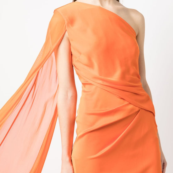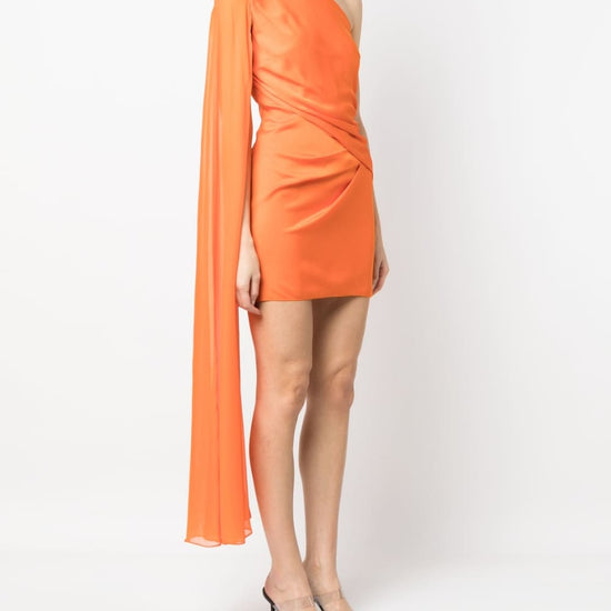 Asimmetrico, monospalla, manica aperta asymmetric silk crepe mini dress size and fit - this piece fits true to size. we recommend you get your regular size. model is 1,75m / 5ft 8in wearing size 8 (uk)