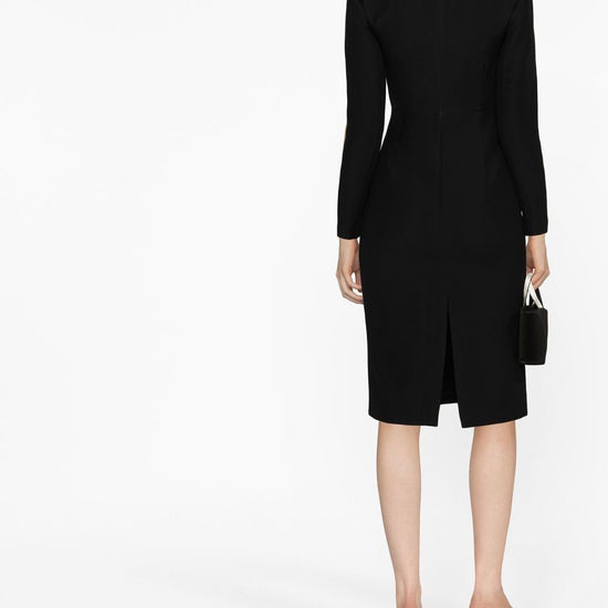 Midi, tubino, spalle scoperte, cut-out wool and silk blend midi tube dress size and fit - this piece fits true to size. we recommend you get your regular size. model is 1,75m / 5ft 8in wearing size 8 (uk)