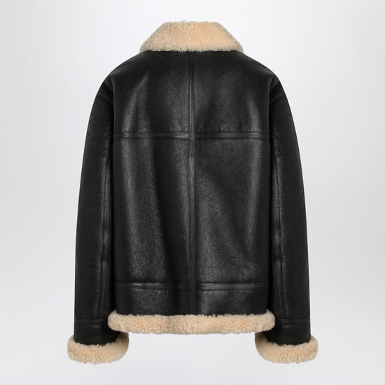 Black leather saint laurent jacket featuring a contrasting shearling collar and edging, long sleeves, a front zip fastening, two side welt pockets, and a double adjustable neck strap. size and fit - model wears size 36 fr model measurements: height: 179 cm chest: 82 cm waist: 65 cm hips: 90 cm