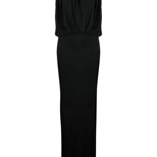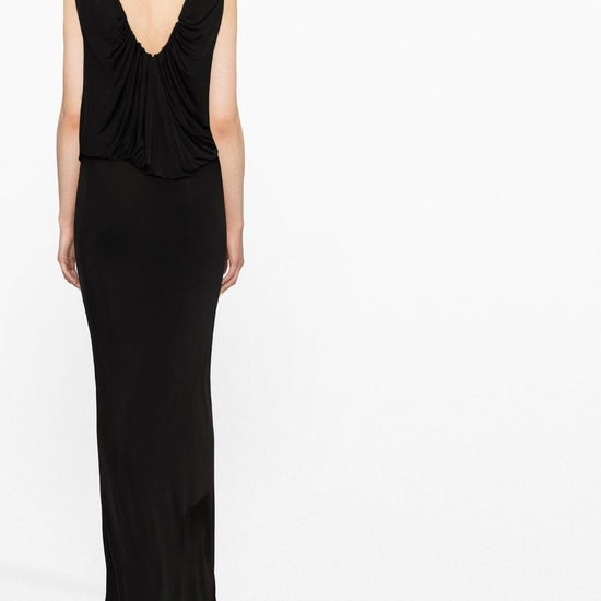 Sleeveless dress from saint laurent featuring black, draped design, round neck, sleeveless, v-back and floor-length. g.collo long jersey dress size and fit - this piece fits true to size. we recommend you get your regular size. model is 1,75m / 5ft 8in wearing size 36 (fr)
