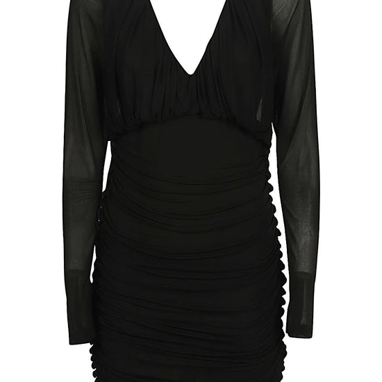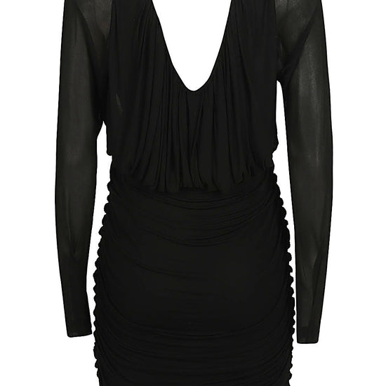 Abito corto a maniche lunghe, ampio scollo a v frontale e sulla schiena, design arricciato. short jersey dress size and fit - this piece fits true to size. we recommend you get your regular size. model is 1,75m / 5ft 8in wearing size 36 (fr)
