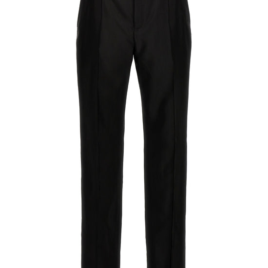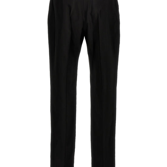 High-waisted pants in faille wool blend with straight leg and pressed pleat, zip and hook closure, pockets. size and fit - true to size fit