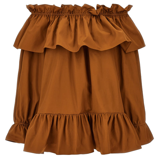 Off-the-shoulder cotton twill mini dress with oversized ruffle details, long sleeves with drawstring poet cuffs, pockets. size and fit - true to size fit