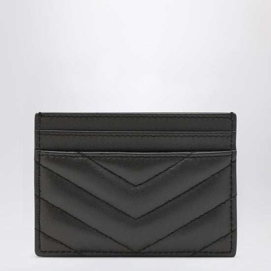 Grey leather card holder by saint laurent, featuring quilted design, cassandre metal logo on the front, and five card slots. size and fit - width 10,5 cm x height 7,5 cm x depth 0,5 cm handle drop: 30 cm