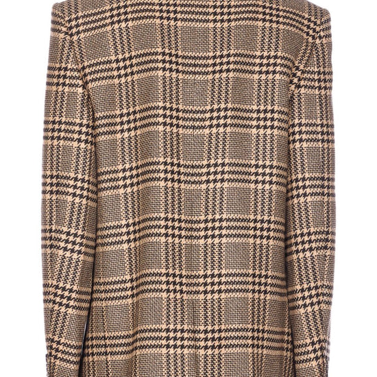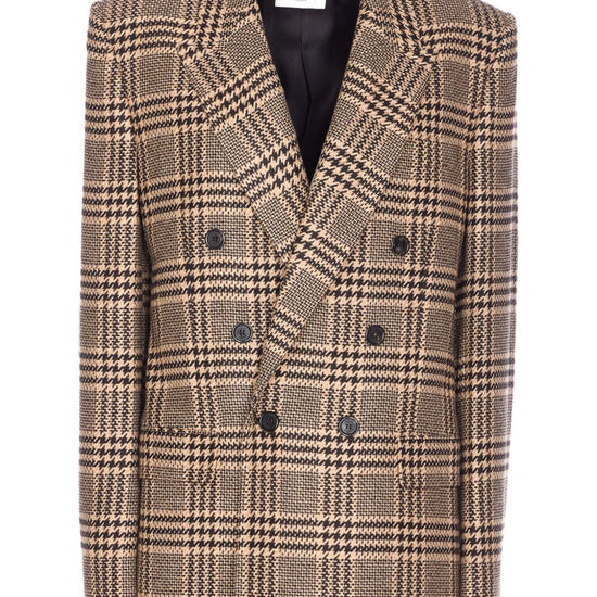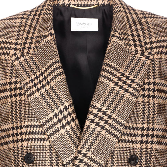 Brown double-breasted closure v-neck long sleeves cashmere and silk double-breasted jacket