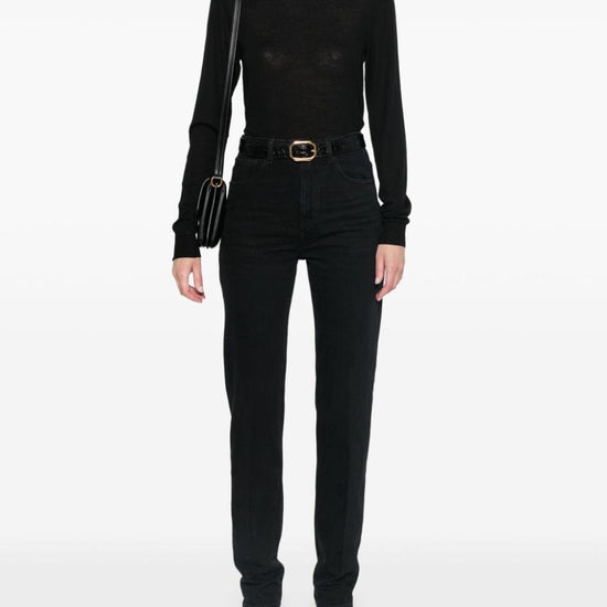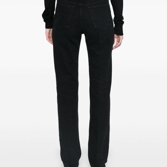 Black cotton denim logo patch to the rear button fly fastening belt loops straight leg classic five pockets we've partnered with good on you — an independent agency that rates how brands perform in relation to their impact on the planet, people and animals, with a multi-criteria rating simplified to a five points scale. in order to be awarded our conscious label, larger brands need to score a minimum of four out of five ('good'), while smaller brands must score at least three out of five ('it's a start'). this item comes from a brand rated three out of five ('it's a start') by good on you at the time it was added on farfetch. please note, this is a brand-level rating and does not guarantee that this product is made with conscious materials. learn more about what makes a product conscious on our conscious criteria page straight cotton jeans size and fit - this piece fits true to size. we recommend you get your regular size. model is 1,75m / 5ft 8in wearing size 27 (waist cm)