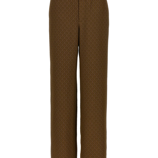 Viscose twill pants, jacquard 'medaglioni' pattern, slightly loose fit, straight leg, front zip and hook closure, side pockets. size and fit - true to size fit