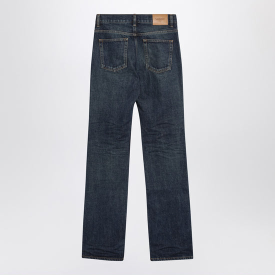 Saint laurent jeans in heritage indigo cotton denim, featuring five classic pockets, low-rise waist with belt loops, straight leg, button closure with button fly, visible stitching, and back logo patch. size and fit - model wears size 26 model measurements: height: 179 cm chest: 82 cm waist: 65 cm hips: 90 cm