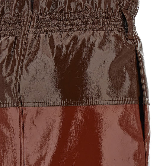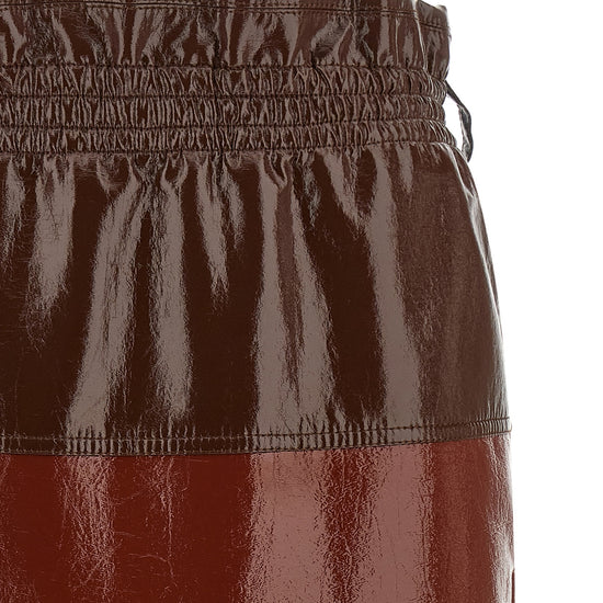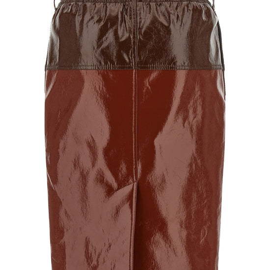 Color-block cotton midi skirt with patent effect, pencil silhouette, elastic waistband with 'paper-bag' design, pockets, back split, lining. size and fit - true to size fit - french size