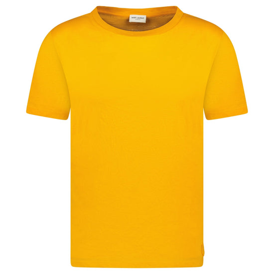 elevate your casual wardrobe with the saint laurent patch logo t-shirt in orange. crafted from 100% premium cotton, this t-shirt blends comfort with luxury. the vibrant orange colour is complemented by a subtle saint laurent patch logo, giving the tee a sleek, modern edge. whether paired with denim for a laid-back look or layered under a jacket for a more polished style, this t-shirt adds effortless sophistication to any outfit.