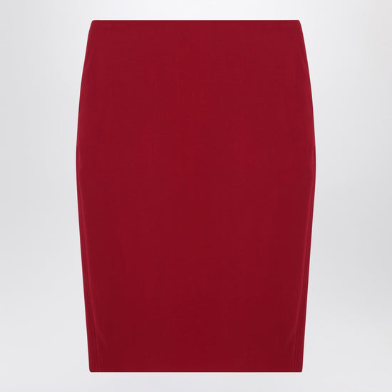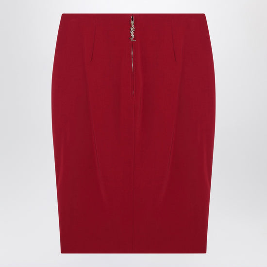 Saint laurent pencil skirt in red viscose-blend satin, featuring mid-rise waist, side pockets, and back zip closure with cassandre logo. size and fit - model wears size 36 fr model measurements: height: 179 cm chest: 82 cm waist: 65 cm hips: 90 cm