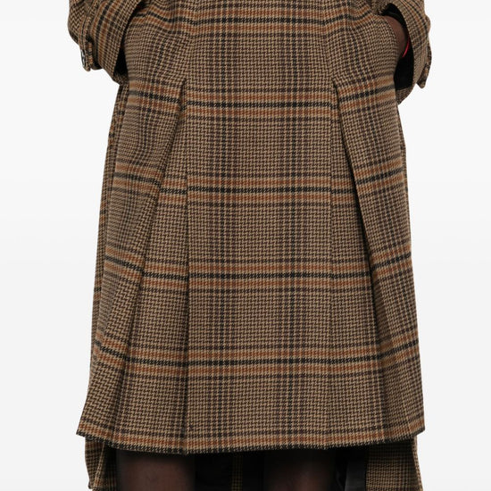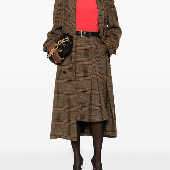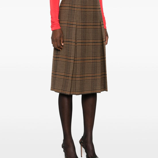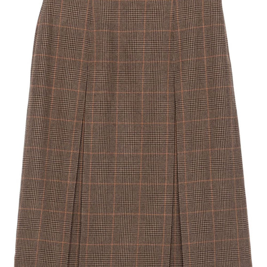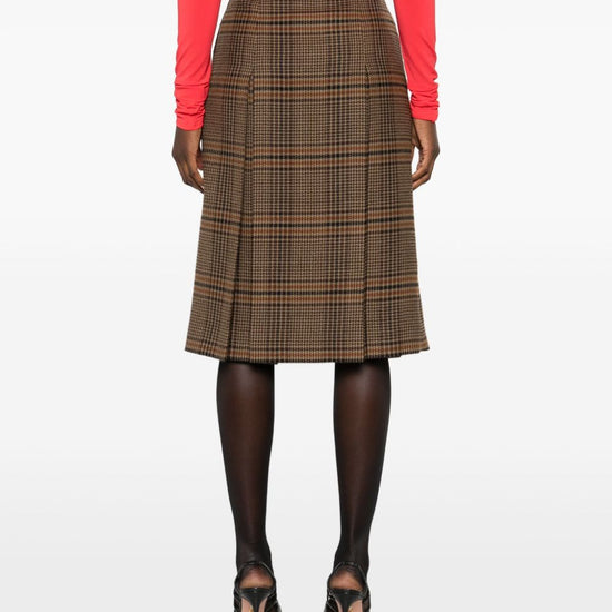 Brown plaid pattern straight hem wool-cashmere blend silk lining wool cashmere midi skirt