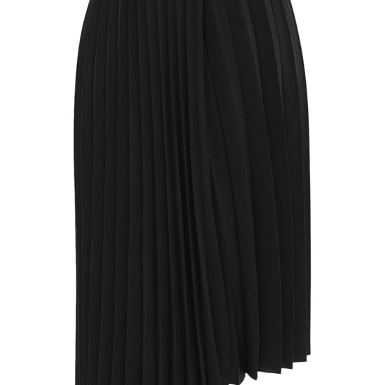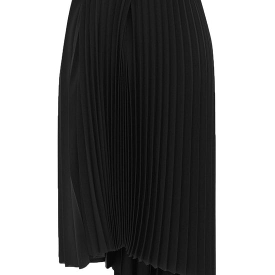 Asymmetrical pleated midi skirt from saint laurent featuring black, fully pleated, asymmetric design, paperbag waist, concealed rear zip fastening and mid-length. midi, plissé asymmetric pleated midi skirt size and fit - this piece fits true to size. we recommend you get your regular size. model is 1,75m / 5ft 8in wearing size 36 (fr)