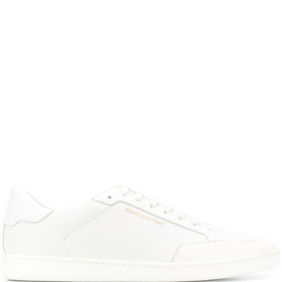 Saint laurent’s latest collection saw an elegant interpretation of contemporary menswear detailed by sharp 1980s references, like these white leather andy low-top perforated sneakers. featuring a round top, a lace-up front fastening, a branded insole, branded heel counter, decorative perforations and a white rubber sole. court classic sl/10 leather sneakers size and fit - heel 1 in / 2,5 cm; platform 0,8 in / 2 cm