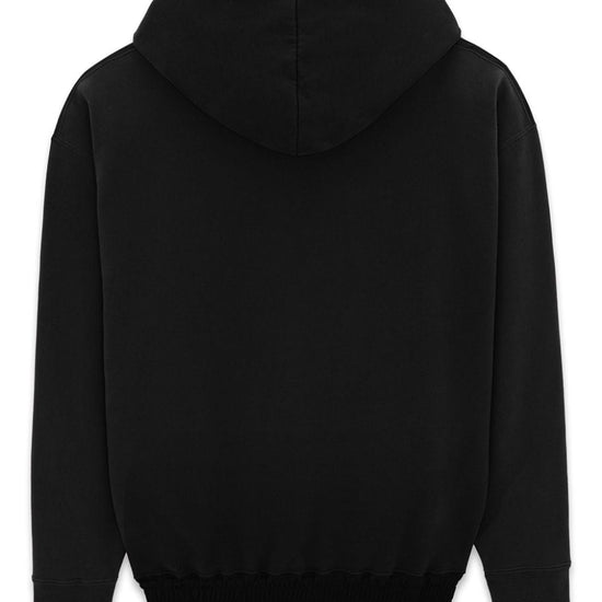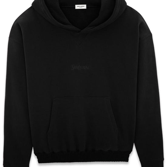 Black organic cotton classic hood embroidered logo to the front front pouch pocket drop shoulder long sleeves ribbed cuffs and hem this item is made from at least 50% organic materials. learn more about what makes a product conscious on our conscious criteria page cotton hoodie size and fit - this piece fits true to size. we recommend you get your regular size. model is 1,84m / 6ft 1in wearing size m
