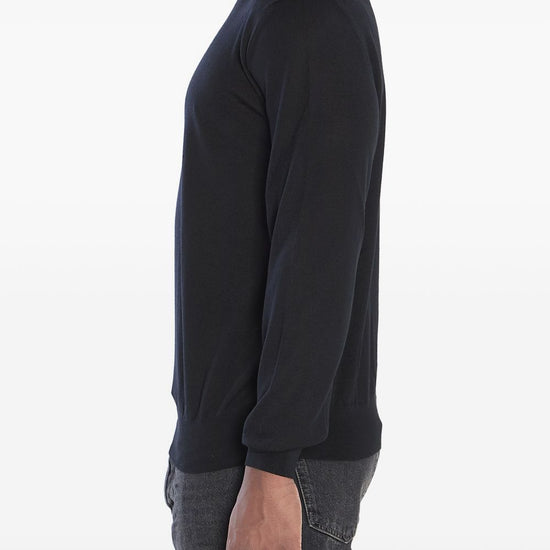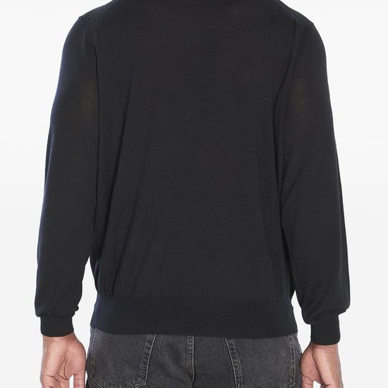 Black wool turtleneck neck long sleeves ribbed cuffs ribbed hem wool turtle-neck sweater