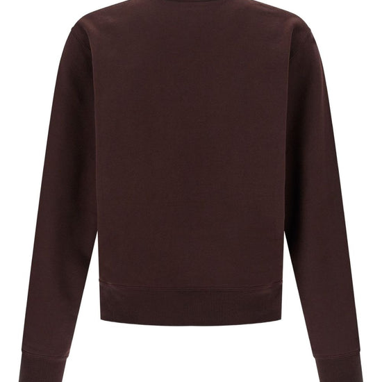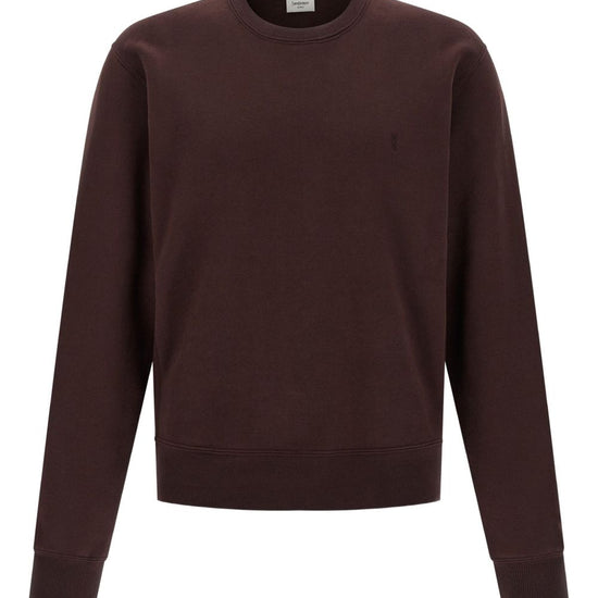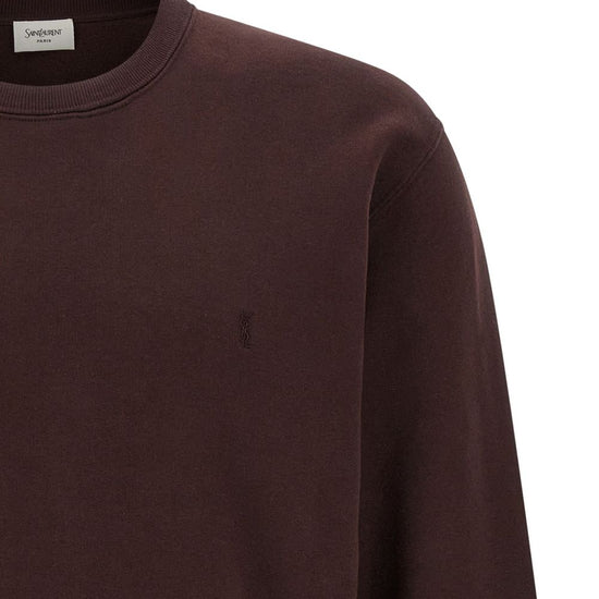 Dark brown cotton fabric crew neck long sleeves ribbed cuffs tone-on-tone embroidery cassandre cotton sweatshirt