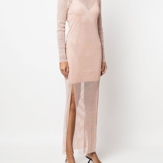 Rhinestone-embellished sheer maxi-dress from santa brands featuring blush pink, cotton blend, rhinestone embellishment, semi-sheer construction, round neck, long sleeves, side slit and mid-length. c/strass rhinestones embellished long dress size and fit - this piece fits true to size. we recommend you get your regular size. model is 1,75m / 5ft 8in wearing size uni