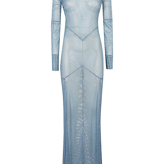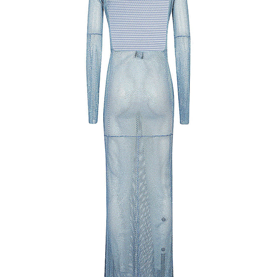 Long blue dress, long sleeves, transparent, closure with buttons behind the neck, open back. c/fiori maxi dress size and fit - this piece fits true to size. we recommend you get your regular size. model is 1,75m / 5ft 8in wearing size uni
