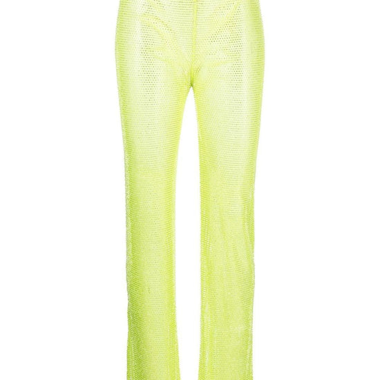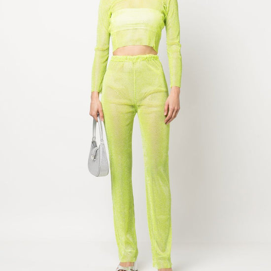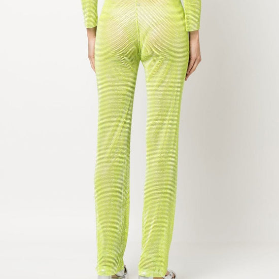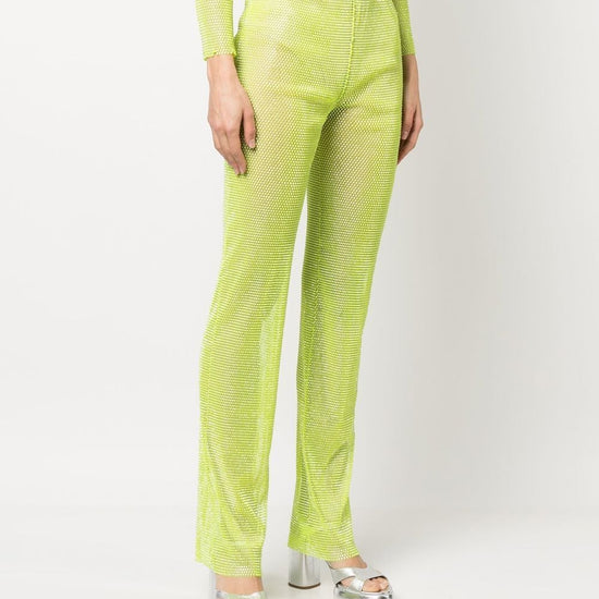 Rhinestone-embellished straight trousers from santa brands featuring lime green, rhinestone embellishment, semi-sheer construction, elasticated waistband, high-waisted and straight leg. c/strass sparkling trousers size and fit - this piece fits true to size. we recommend you get your regular size. model is 1,75m / 5ft 8in wearing size s