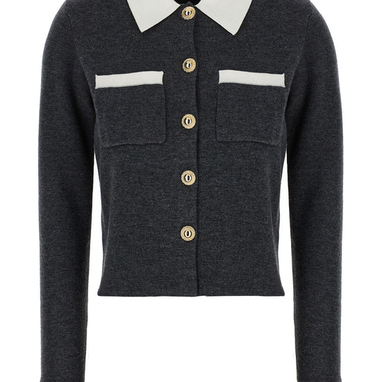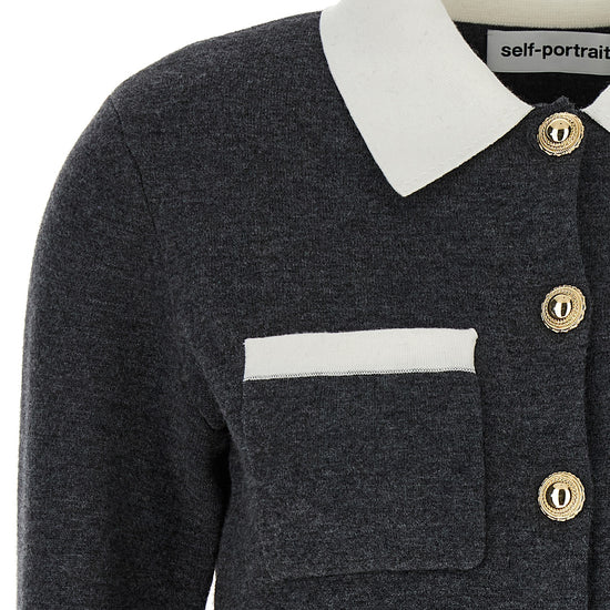 Self-Portrait Grey Contrast Collar Cardigan