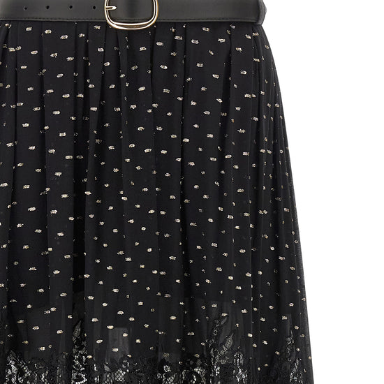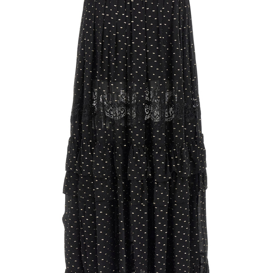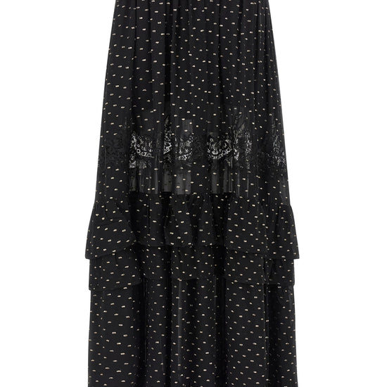 Self-Portrait Black And Gold Chiffon Lace Maxi Skirt