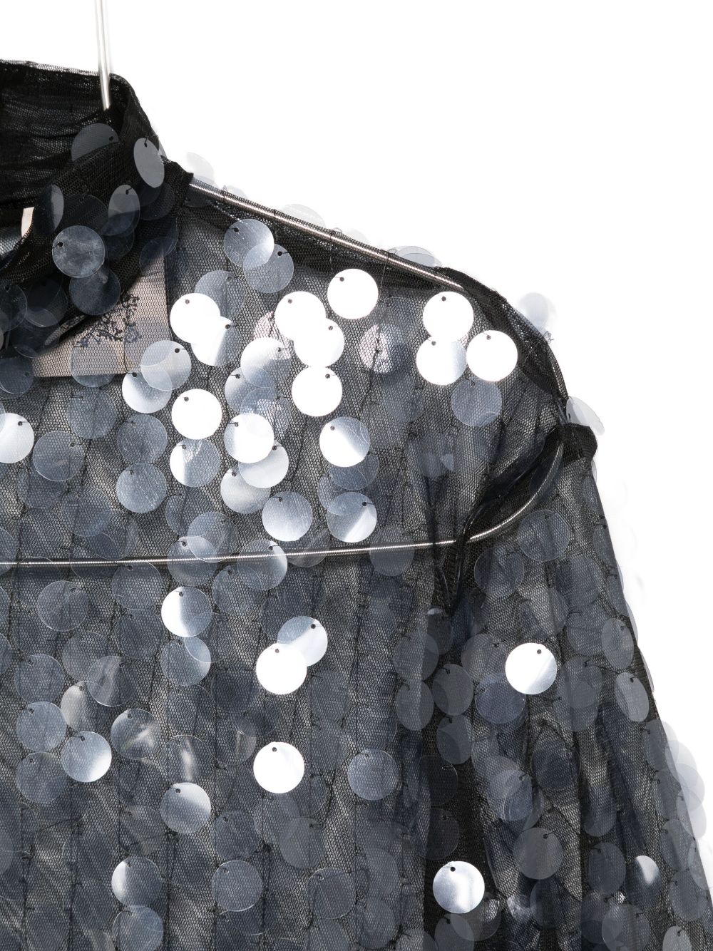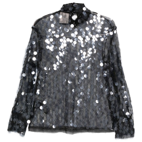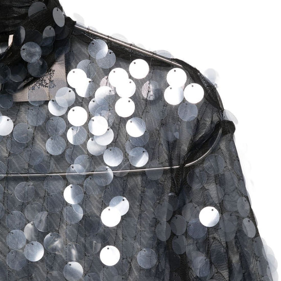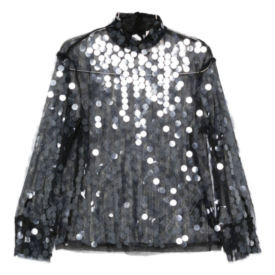 Black/grey sequin embellishment high neck long sleeves sheer finish sequined blouse