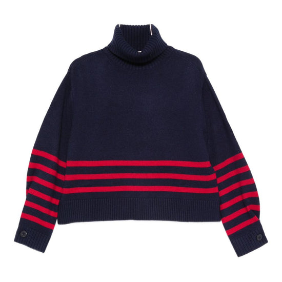 Blue striped turtleneck buttoned cuffs elisa wool blend turtle-neck jumper