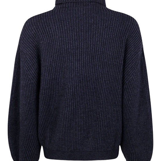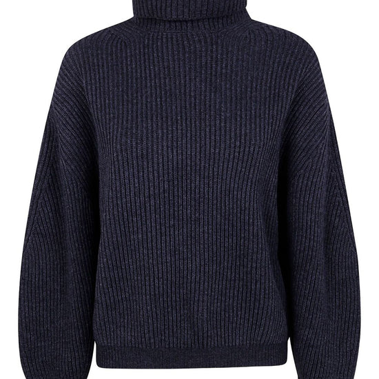 Charcoal grey roll neck ribbed texture balloon sleeves relaxed fit wool cashmere blend cashmere blend jumper
