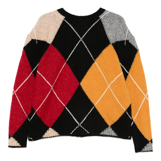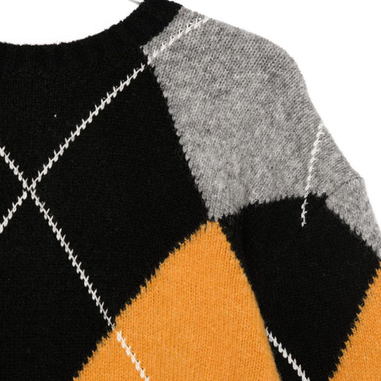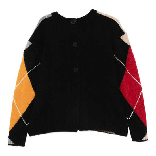 Black crew neck button fastening long sleeves diamond-pattern sandrine wool blend jumper