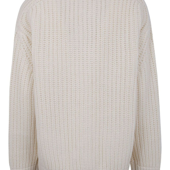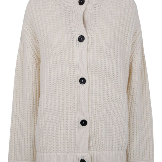 Off-white ribbed knit button front long sleeves wool knitted cardigan