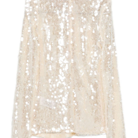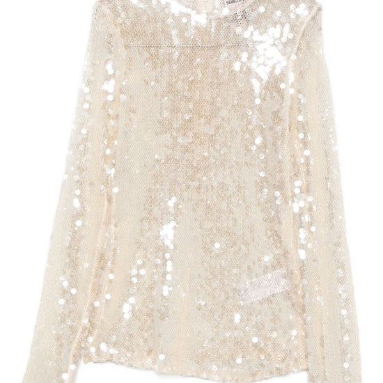 Beige sequin embellishment round neck long sleeves sequined top