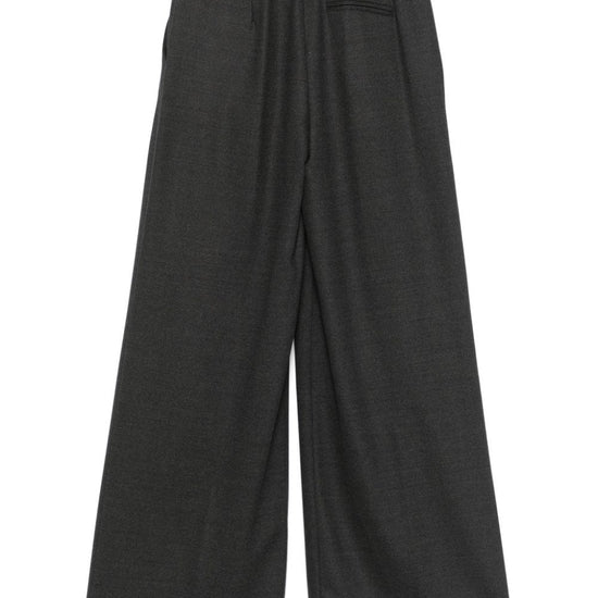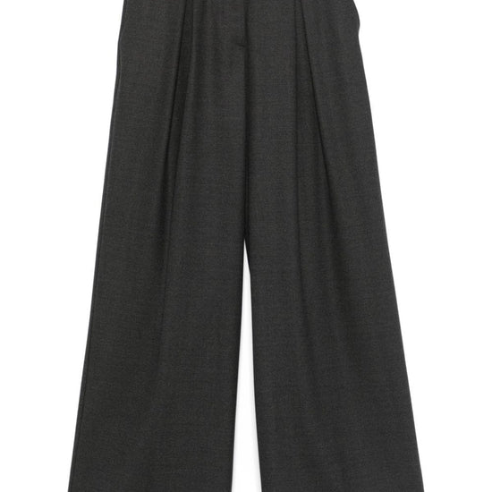 Charcoal grey virgin wool blend twill weave palazzo design concealed front button, hook and zip fastening belt loops inverted pleat two side slash pockets rear jetted pocket wide leg jacob wool trousers size and fit - this piece fits true to size. we recommend you get your regular size. model is 1,75m / 5ft 8in wearing size 40 (it)