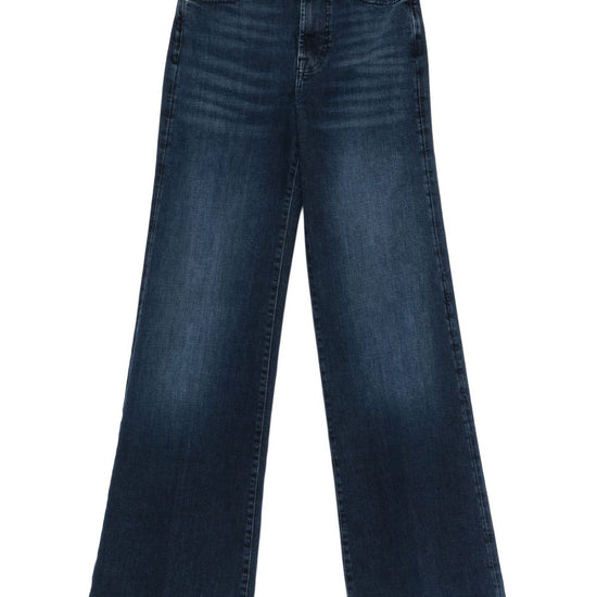 whiskering effect at the thighs wide-leg denim jeans