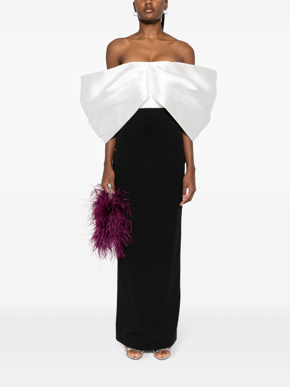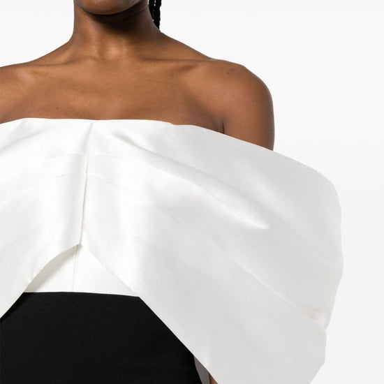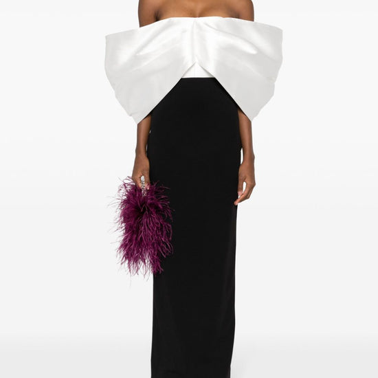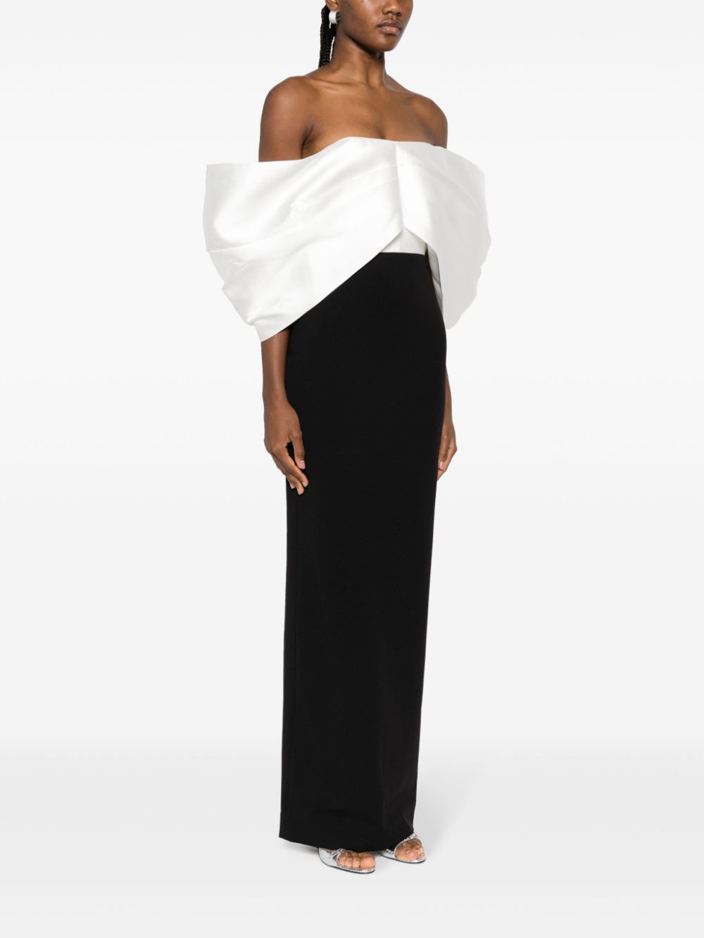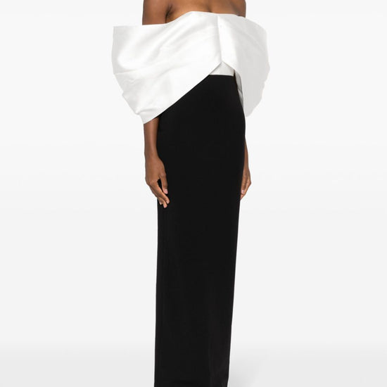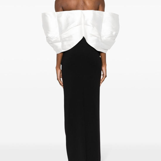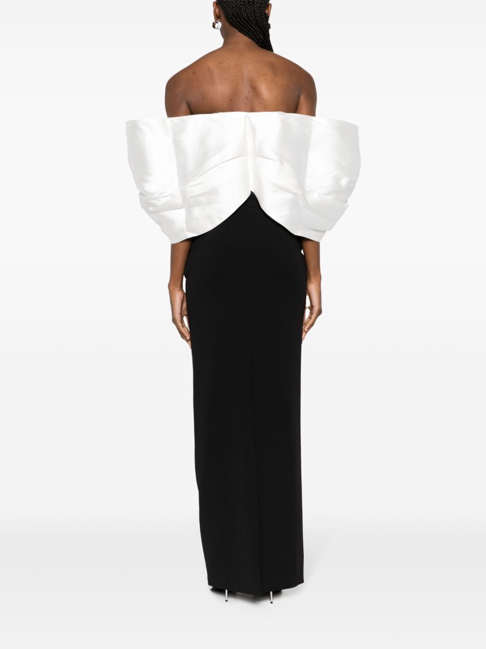 Black/white duchess satin weave off-shoulder rear slit ankle-length straight hem joni maxi filippa maxi dress size and fit - this piece fits true to size. we recommend you get your regular size. model is 1,75m / 5ft 8in wearing size 8 (uk)