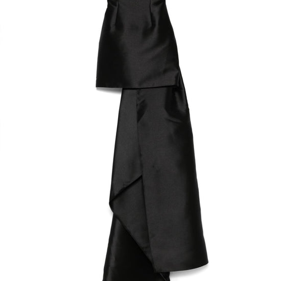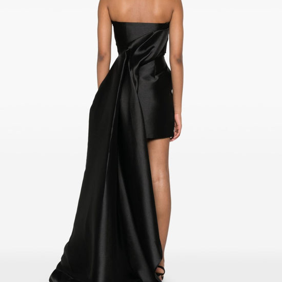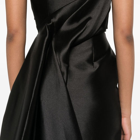 Black, side zip and hidden hook closure, square neckline, strapless bodice and train. mini, drappeggio meyer mini dress size and fit - this piece fits true to size. we recommend you get your regular size. model is 1,75m / 5ft 8in wearing size 8 (uk)