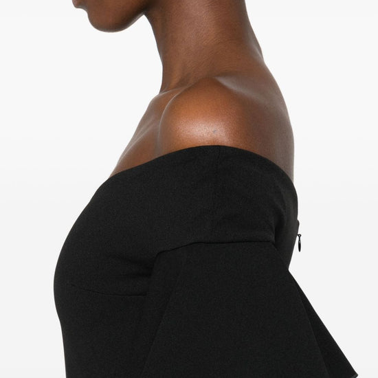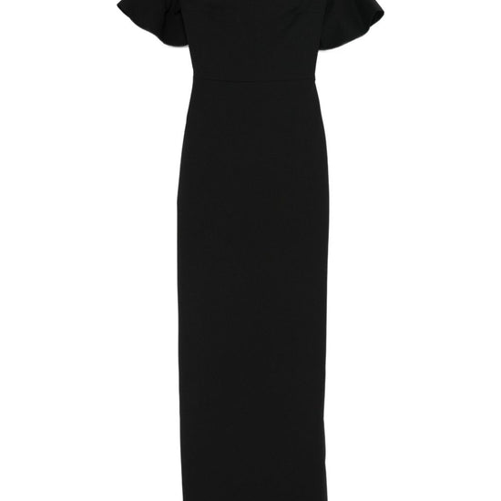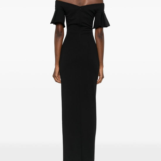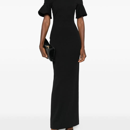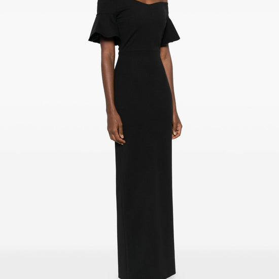 Black off-shoulder design short sleeves concealed back zip fastening cielo maxi dress