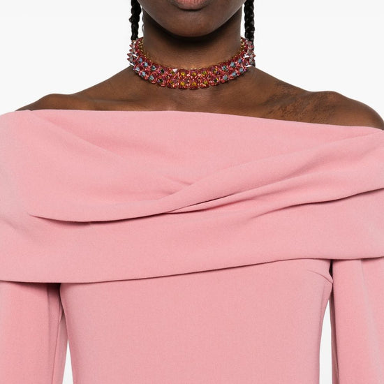 Pink off-the-shoulder neckline maxi length straight hemline nuri midi dress size and fit - this piece fits true to size. we recommend you get your regular size. model is 1,75m / 5ft 8in wearing size 8 (uk)