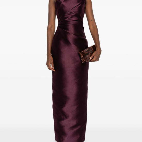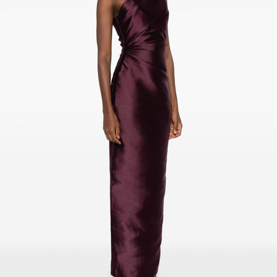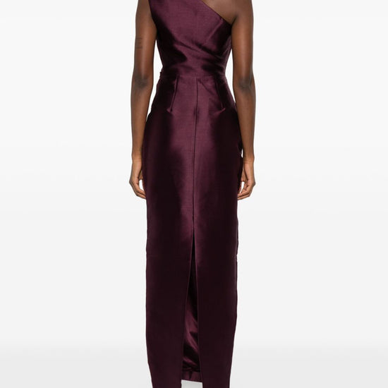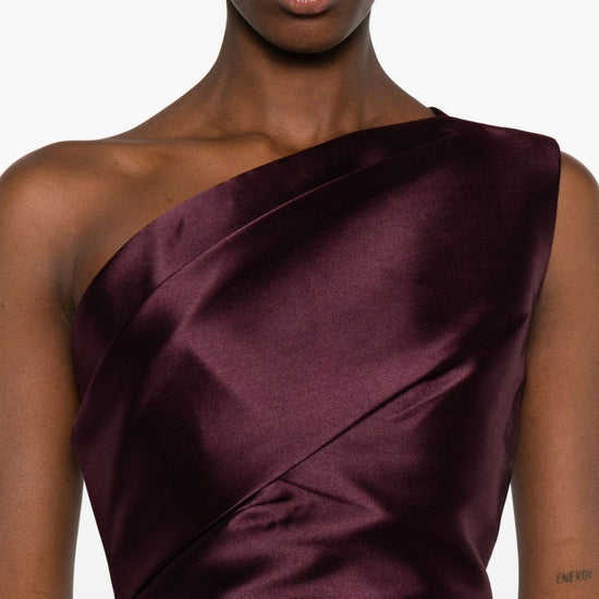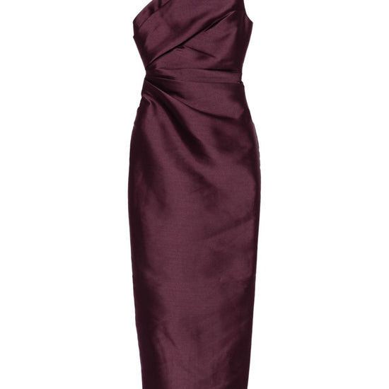 Burgundy one-shoulder neckline draped bodice maxi length straight hemline kira midi dress size and fit - this piece fits true to size. we recommend you get your regular size. model is 1,75m / 5ft 8in wearing size 8 (uk)