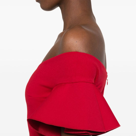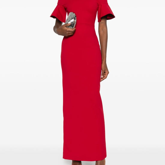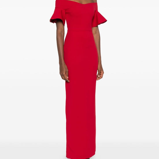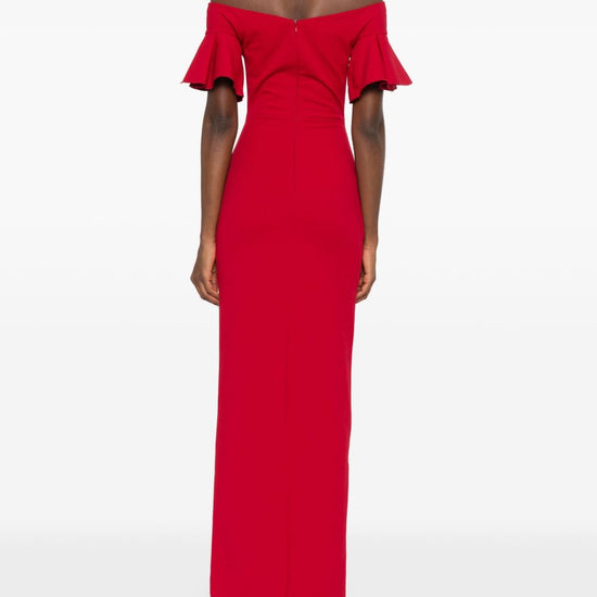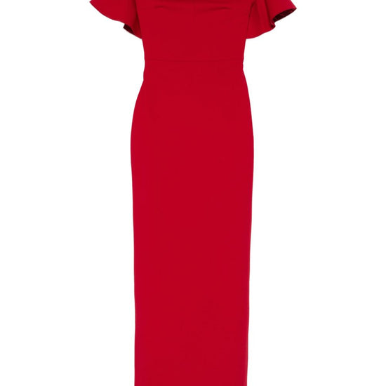 Bright red off-shoulder ruffled sleeves concealed zip fastening straight hem cielo maxi dress